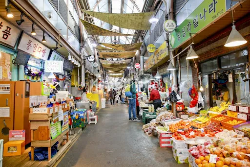 -Vì sao đặc biệt: Chợ truyền thống nổi tiếng với hệ thống mua hàng bằng đồng xu (yeopjeon). Ở đây có một quầy Yakgwa & Dasik thủ công rất nổi tiếng, thường được người Hàn xếp hàng mua mỗi dịp lễ.