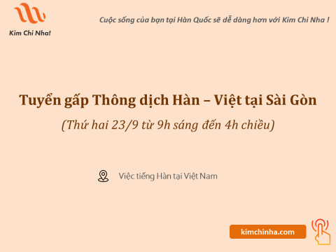 Tuyển gấp thông dịch Hàn - Việt tại Sài Gòn (Thứ hai 23/9 từ 9h sáng đến 4h chiều)