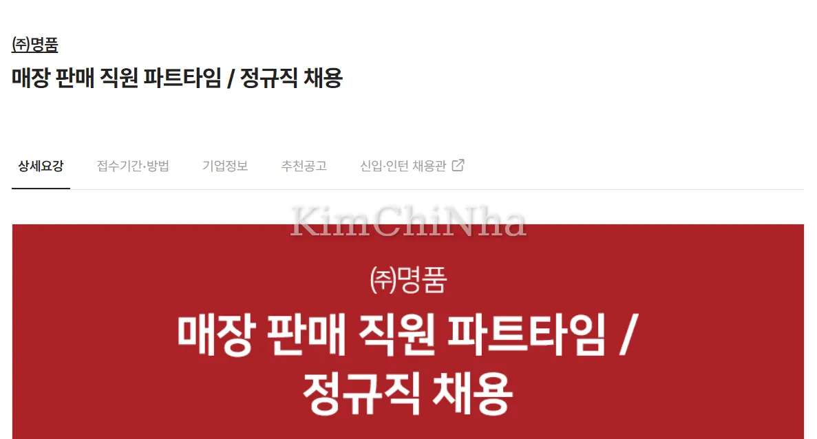 ㈜명품 tuyển dụng nhân viên bán hàng tại Incheon