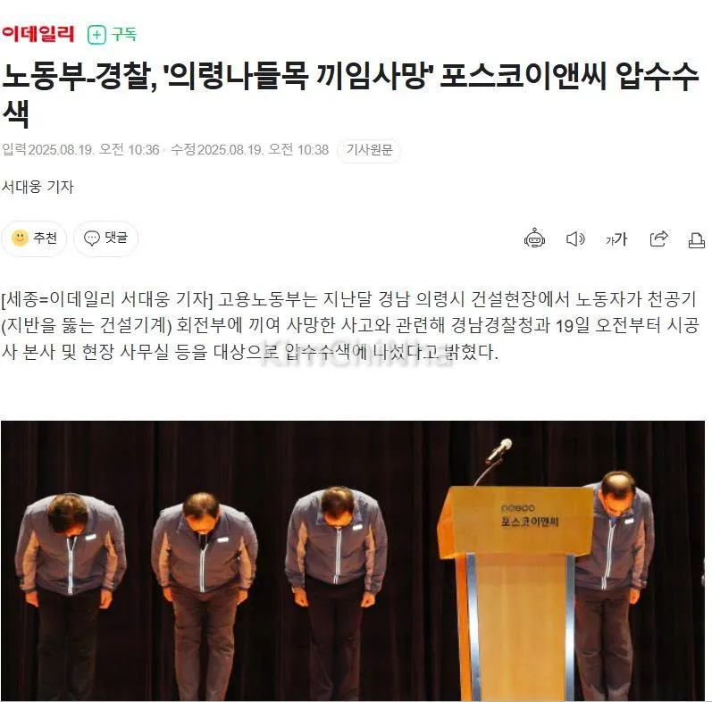 Hàn Quốc: Bộ Lao động và Cảnh sát khám xét trụ sở công ty xây dựng sau vụ tai nạn chết người tại công trường
