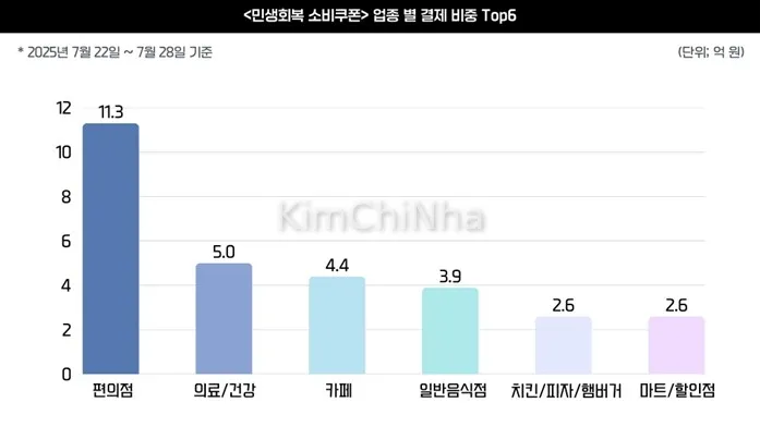 Theo dữ liệu từ công ty phân tích dữ liệu Embrain DeepData, trong vòng một tuần từ ngày 22 đến 28 tháng trước, ngành hàng ghi nhận tỷ lệ sử dụng phiếu tiêu dùng cao nhất là cửa hàng tiện lợi với 11,3%, tiếp theo là cơ sở y tế như bệnh viện, phòng khám đông y, hiệu thuốc (5,0%), quán cà phê (4,4%), và nhà hàng thông thường (3,9%). Các ngành hàng thiết yếu, gắn liền với sinh hoạt hàng ngày chính là đối tượng hưởng lợi nhiều nhất từ chính sách này.