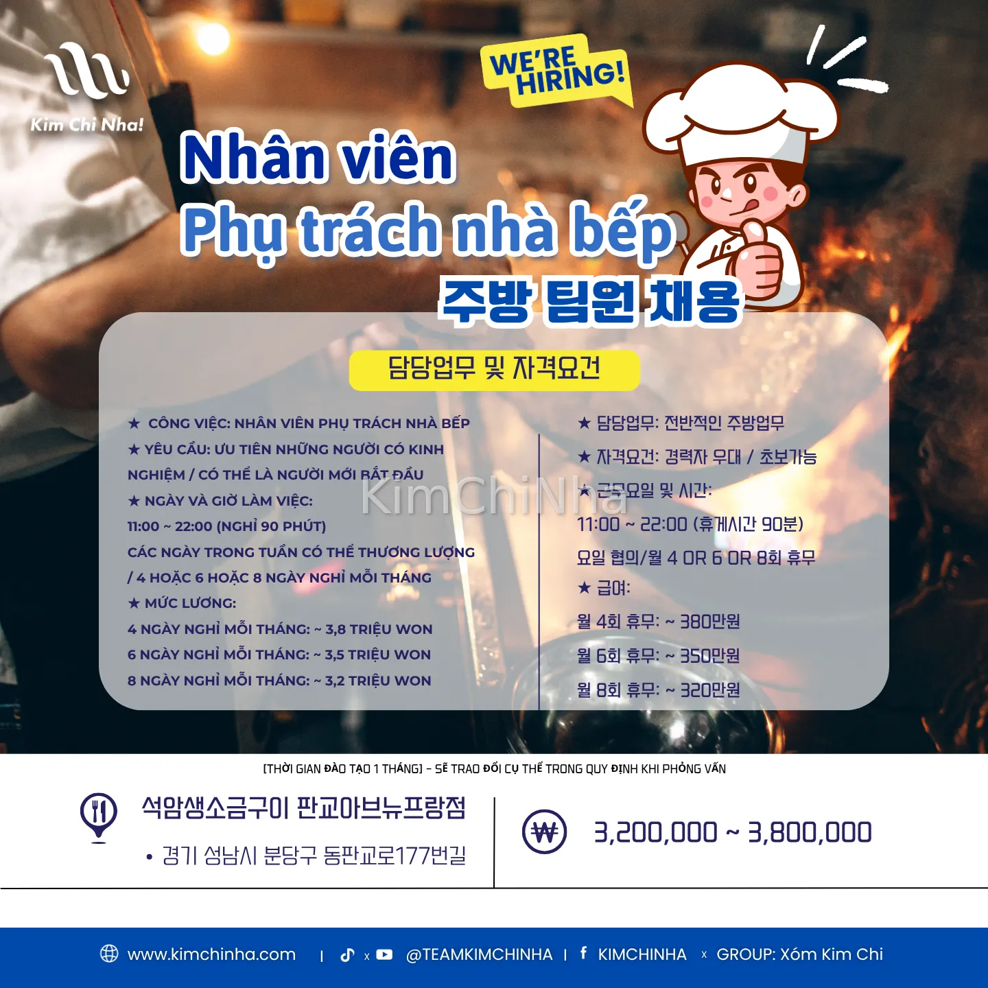 Tuyển nhân viên người nước ngoài – Nhà hàng 석삼생소금구이 (Seoksam Saeng Sogeum Gui) – Khu vực Pangyo, Seongnam