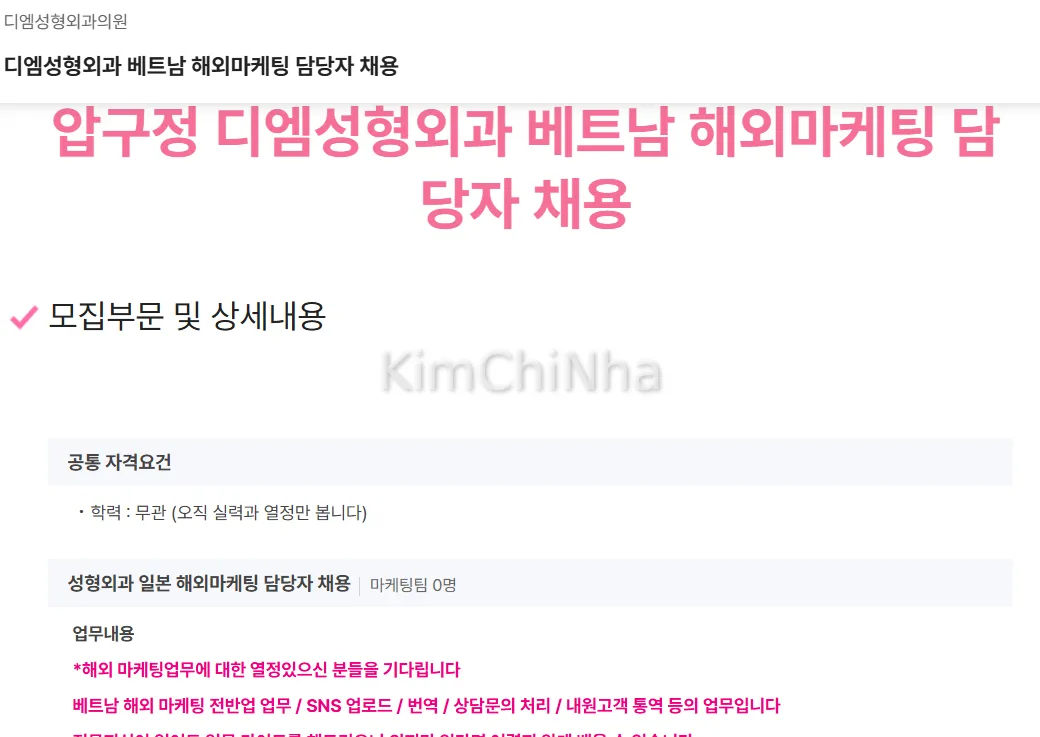 디엠성형외과의원 (DM Plastic Surgery Clinic) tuyển dụng Nhân viên Marketing thị trường Việt Nam