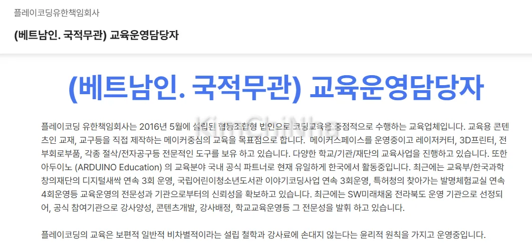 플레이코딩유한책임회사 (PlayCoding Co., Ltd.) tuyển Điều phối Giáo dục người Việt