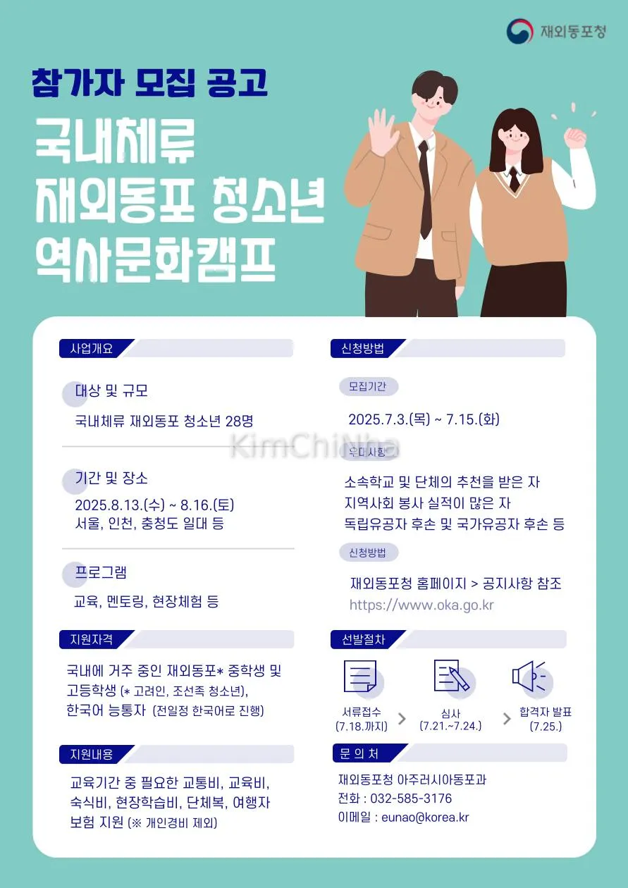 Cơ Hội Tham Gia Trại Hè Văn Hóa – Lịch Sử Dành Cho Thanh Thiếu Niên Gốc Hàn Đang Lưu Trú Tại Hàn Quốc (2025)