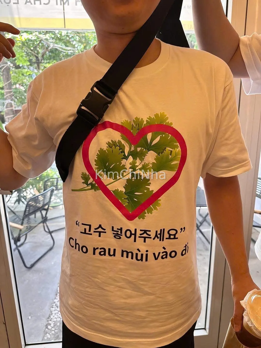 Khi chiếc áo “đừng cho rau mùi” xuất hiện, phe đối lập cũng không chịu kém cạnh! Một du khách Hàn khác xuất hiện với chiếc áo phản đòn:
