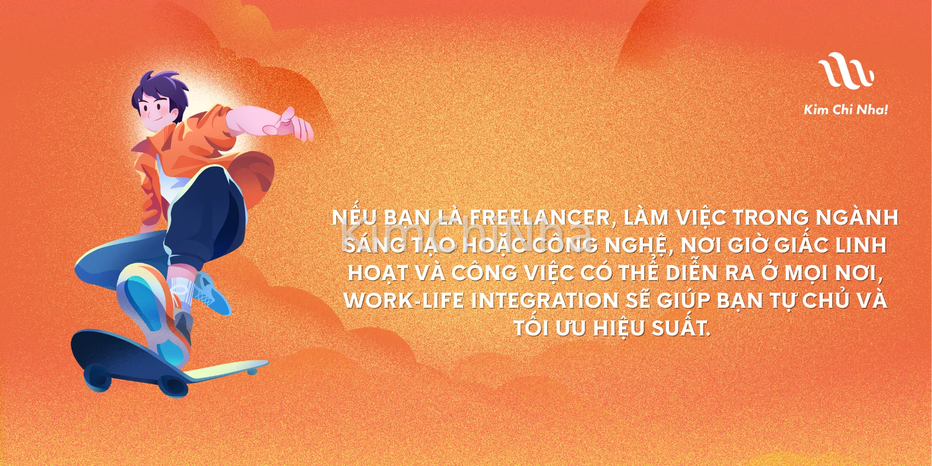 Nếu bạn là freelancer, làm việc trong ngành sáng tạo hoặc công nghệ, nơi giờ giấc linh hoạt và công việc có thể diễn ra ở mọi nơi, work-life integration sẽ giúp bạn tự chủ và tối ưu hiệu suất.