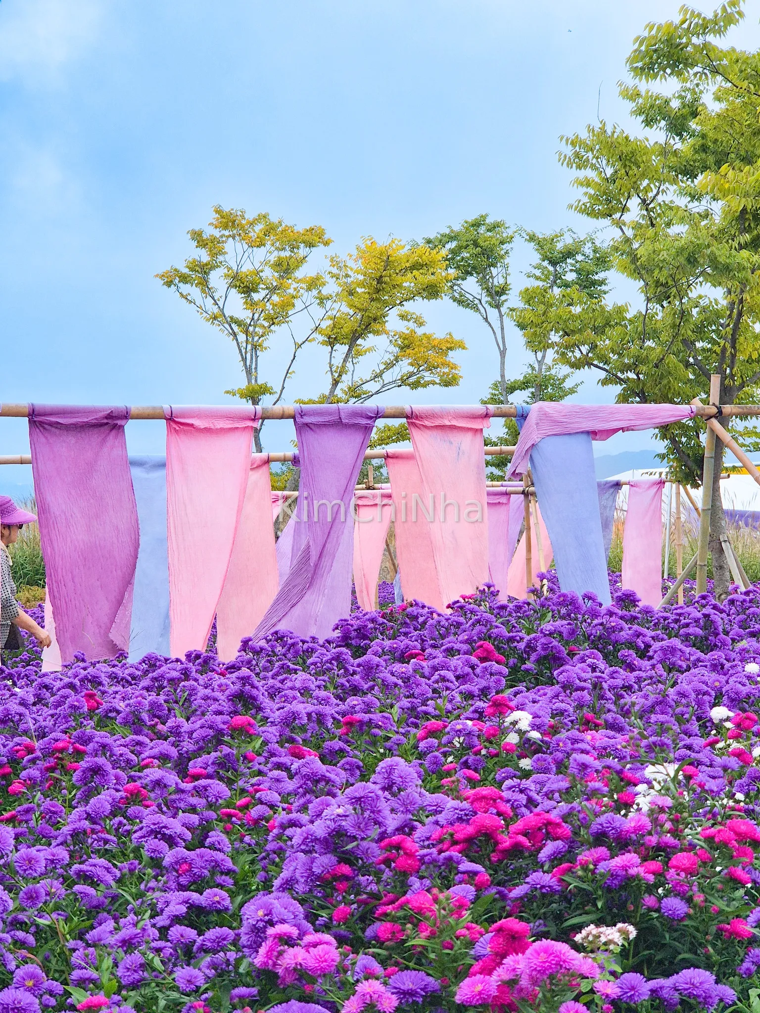 Từ giữa tháng 9, hàng triệu bông hoa cúc tím đã bắt đầu nở rộ, phủ kín cả một ngọn đồi, tạo nên một "thảm lụa" màu tím mộng mơ. Khung cảnh những cánh đồng hoa đung đưa trong gió, dưới ánh nắng thu vàng ươm, chắc chắn sẽ khiến bạn không thể rời mắt.
