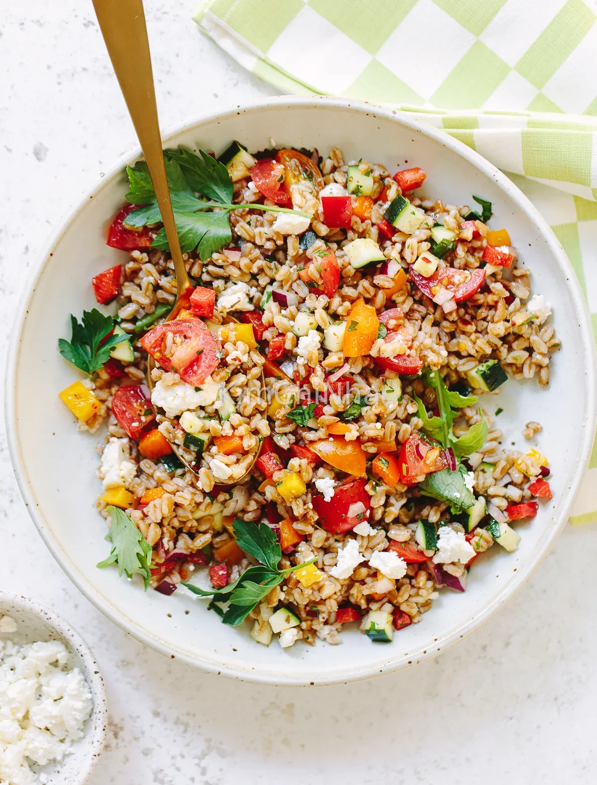 Gimbap hoặc salad healthy: Farro kết hợp với rau củ, thịt nướng hoặc cá hồi, tạo món ăn nhanh, ngon miệng và tốt cho sức khỏe.