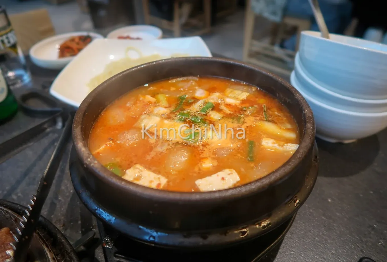 Mặc dù quán nổi tiếng với món miến khoai tây (Gamja-sari) ăn tráng miệng trên chính chiếc vỉ nướng, nhưng "lựa chọn của người sành ăn" lại là món canh tương đậu nành (Doenjang-jjigae).