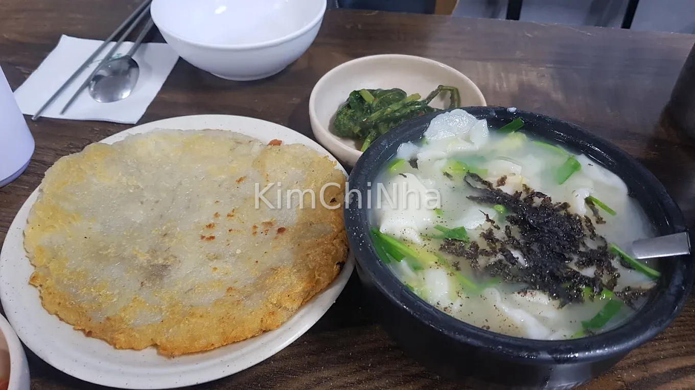 Không gian quán đơn giản, mộc mạc, đúng chất một quán ăn lâu đời. Khi đã ngồi vào bàn, đừng ngần ngại gọi ngay hai món "signature": một phần sujebi và một chiếc bánh khoai tây (감자전 - Gamja-jeon). Đặc quyền của người đến sớm: Các hũ kim chi và kim chi củ cải non (열무김치) đầy ắp, tươi mới, chưa có ai động đến.