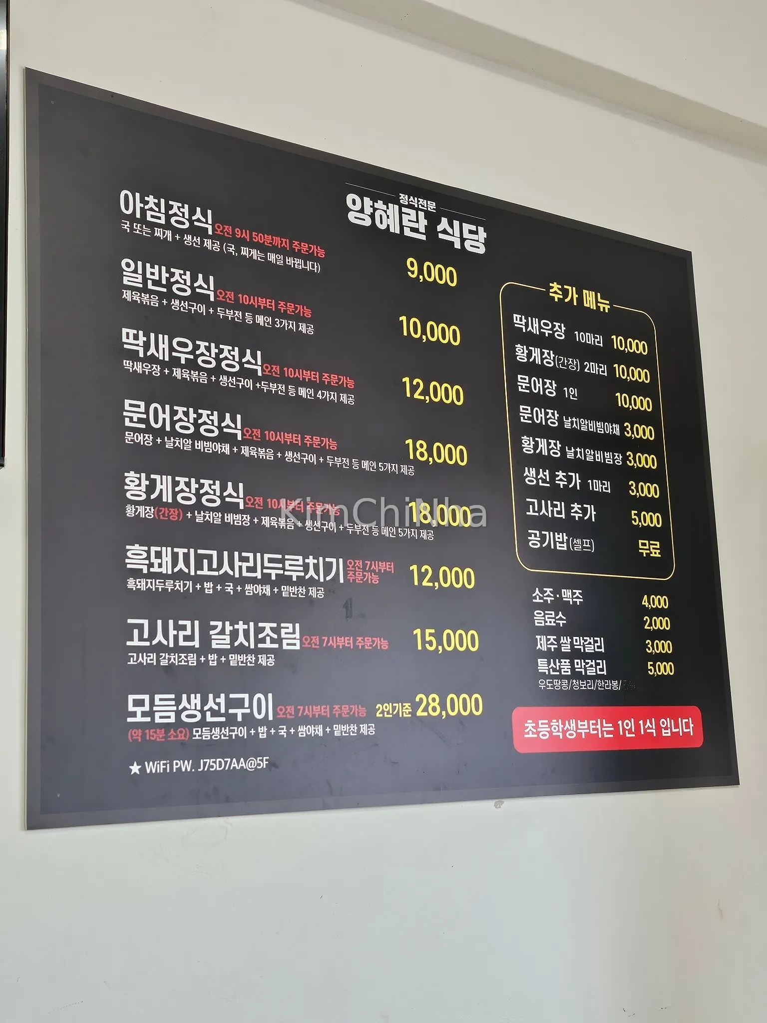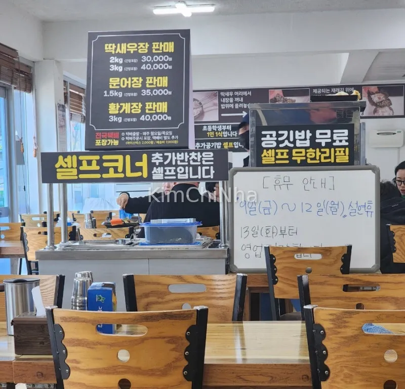 Quán ăn này có tên đề trên biển hiệu là chuyên về Jeongsik (정식 - cơm định suất) và Ttaksaeujang (딱새우장 - tôm ngâm tương). Tuy nhiên, "ngôi sao" thực sự thu hút thực khách mỗi ngày, đặc biệt là dân văn phòng quanh khu vực, chính là suất cơm định suất chỉ 10,000 won.