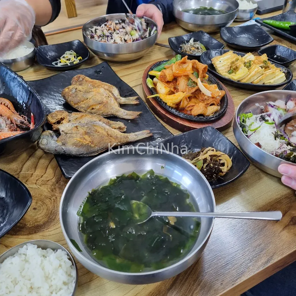 Nước canh thay đổi mỗi ngày: hôm thì nấu với cầu gai (성게), hôm thì nấu với ngao (바지락), hôm lại nấu với vẹm (홍합).