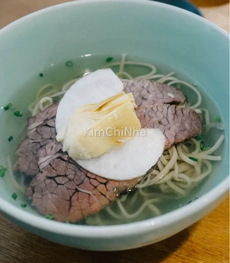 Không gian quán nhỏ gọn, sạch sẽ, không theo lối decor “café hóa” thường thấy mà giữ nguyên phong cách một quán ăn đúng chất địa phương. Nhưng thực đơn ở đây lại là thứ khiến người ta phải ngạc nhiên: mì lạnh được tái hiện với tinh thần fusion, kết hợp kỹ thuật chế biến của bếp Âu với linh hồn món Hàn.