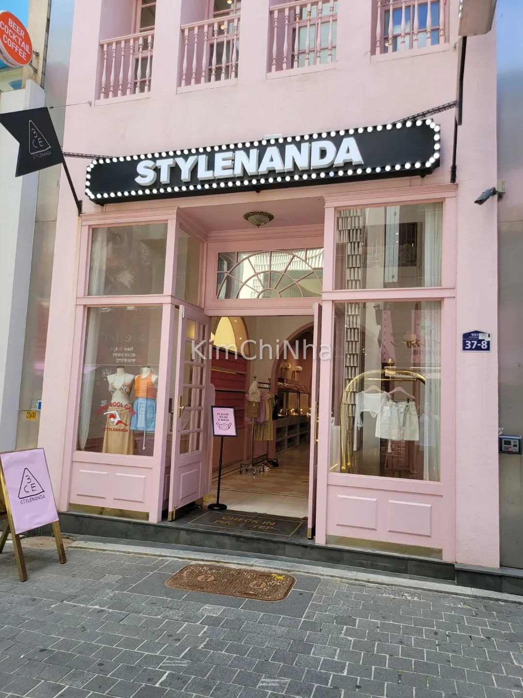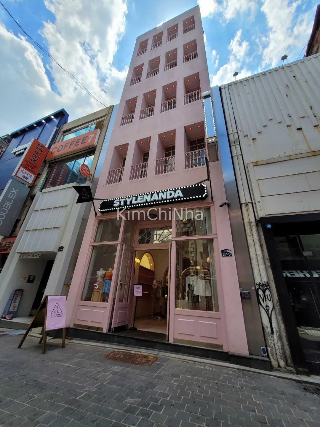 • Tòa nhà Stylenanda/3CE nằm khá nổi bật với mặt tiền hồng pastel. Quán café ở tầng 4, bạn có thể đi thang máy hoặc thang bộ lên.