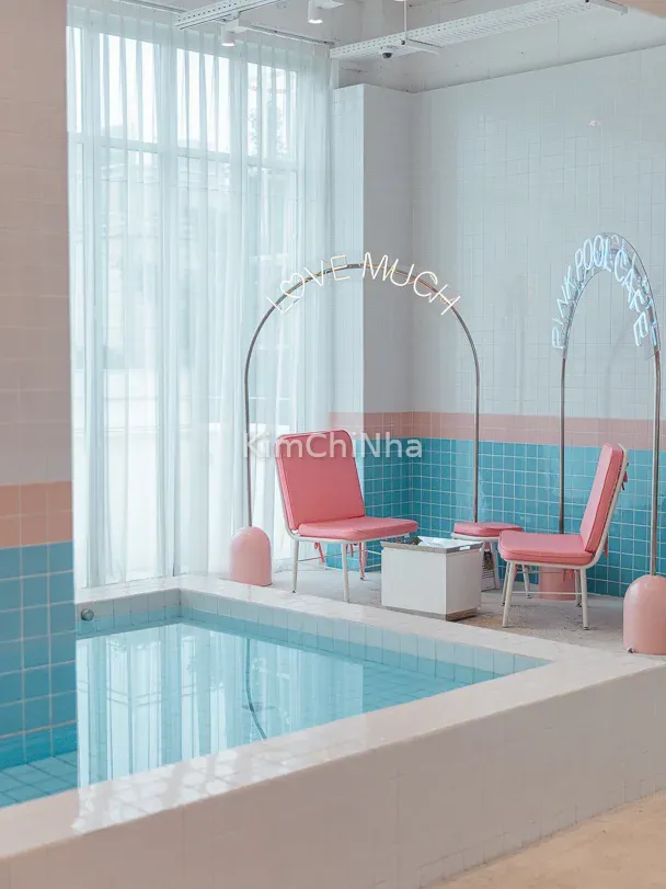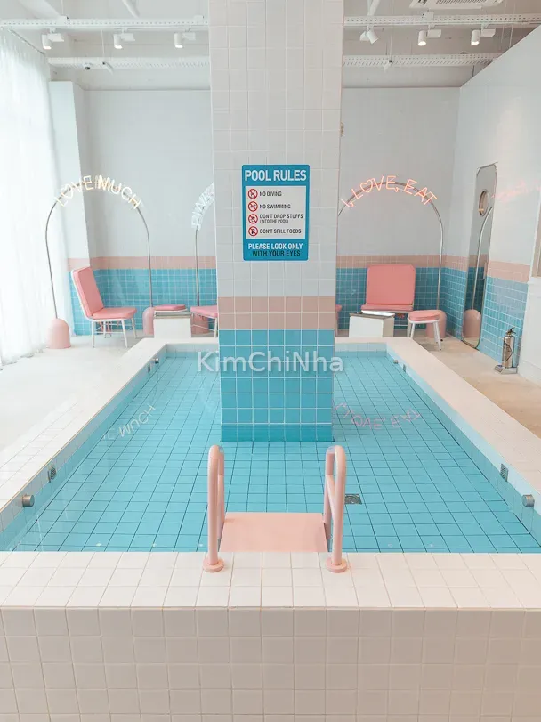 Khi bước vào Pink Pool Café, bạn sẽ cảm giác như lạc vào một bộ phim ngọt ngào. Từ bức tường, bàn ghế, sàn, thậm chí đến ly tách, mọi thứ đều phủ sắc hồng, kết hợp ánh sáng tự nhiên tinh tế khiến không gian vừa mộng mơ vừa sang chảnh. Đây là điểm check-in hàng đầu cho giới trẻ Hàn Quốc và khách du lịch quốc tế.