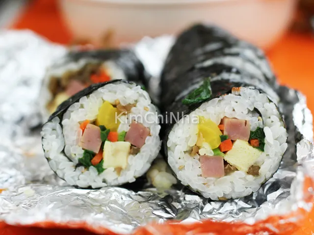 Nếu Nhật có sushi thì Hàn Quốc có kimbap - một món ăn vừa ngon, vừa tiện lợi. Những cuộn cơm trắng dẻo được trải trên lá rong biển, bên trong cuộn cùng nhiều nguyên liệu như cà rốt, dưa leo, trứng, củ cải muối vàng óng, thịt bò, cá ngừ hoặc thanh cua.