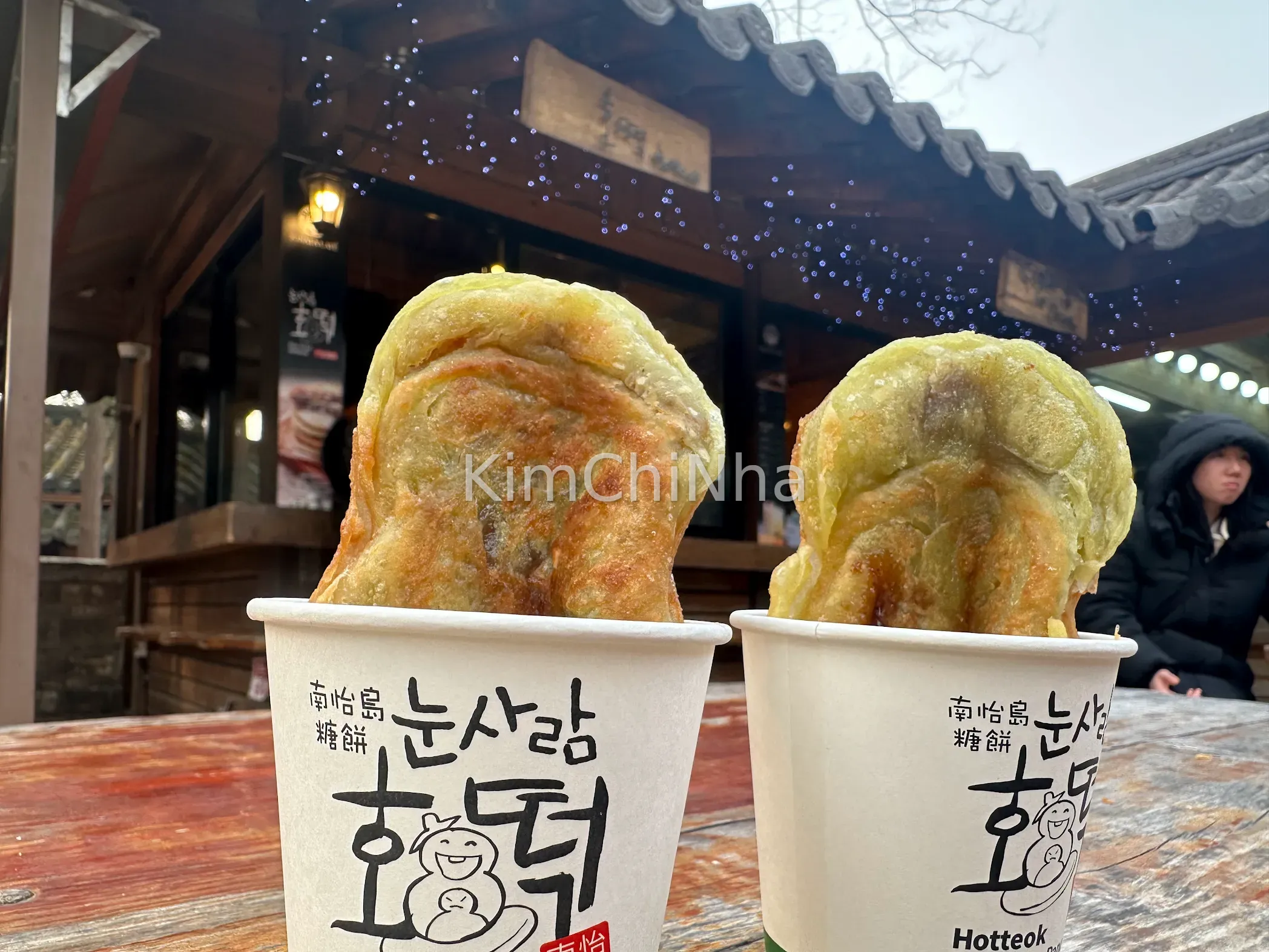 Mùa đông: Hotteok hình người tuyết siêu đáng yêu.