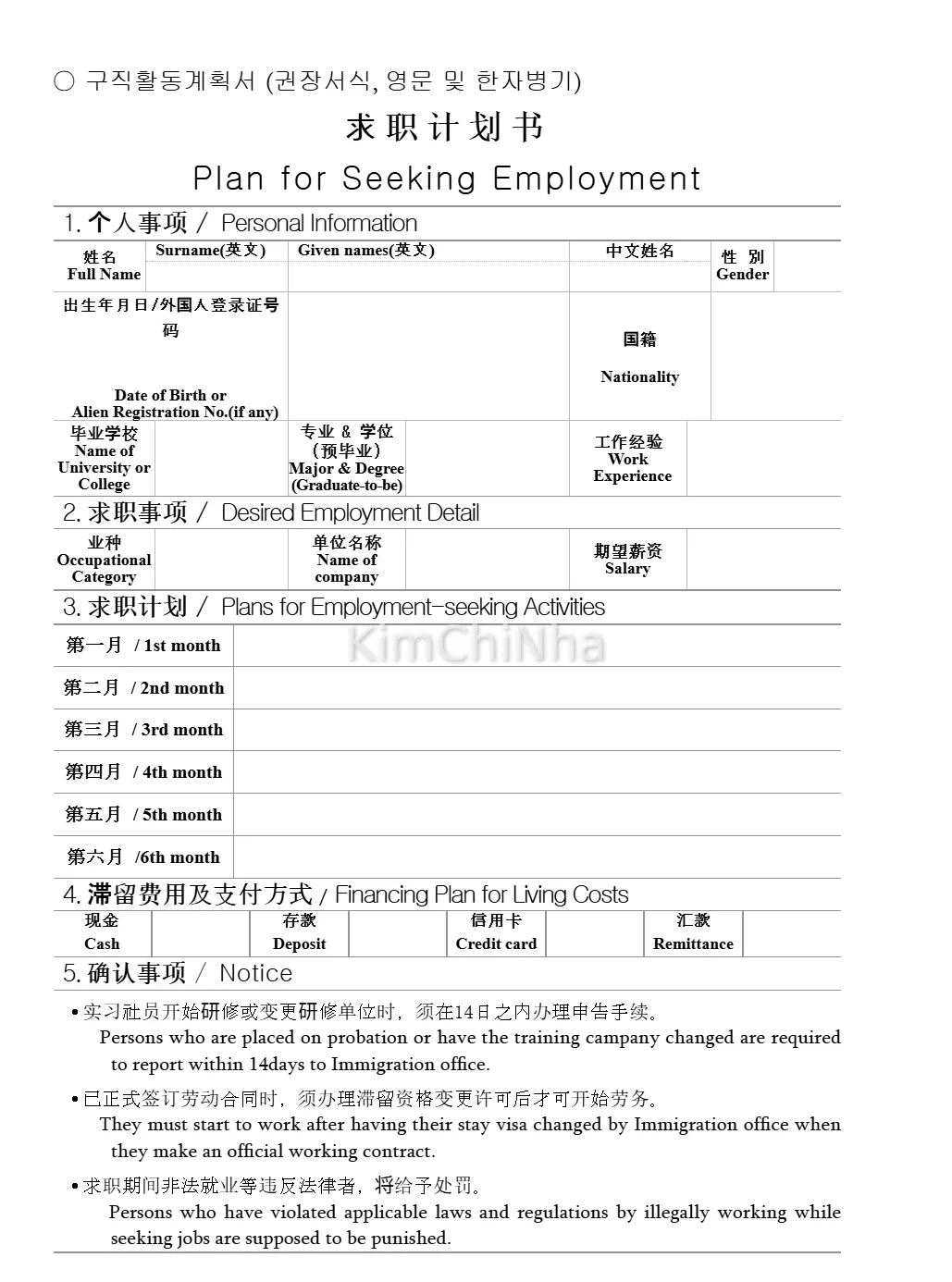 Hướng Dẫn Viết 구직활동계획서 (Job Search Plan) Chuẩn D-10 Visa Hàn Quốc