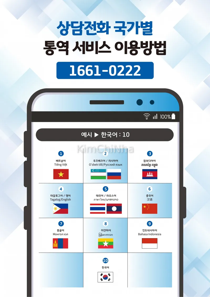 👉 Trung tâm Hỗ trợ Hội nhập Xã hội Gyeonggi (Gyeonggi Migrant Integration Support Center) cung cấp dịch vụ tư vấn miễn phí bằng 10 ngôn ngữ khác nhau, bao gồm cả tiếng Việt!