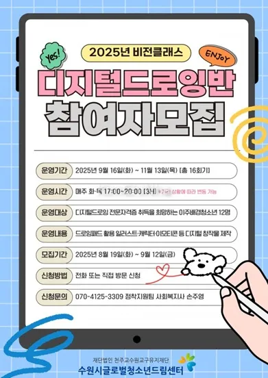 Suwon Global Youth Dream Center trân trọng thông báo hai chương trình trải nghiệm và đào tạo đặc biệt dành cho thanh thiếu niên nhập cư, giúp các bạn khám phá nghề nghiệp trong tương lai và phát triển kỹ năng sáng tạo.