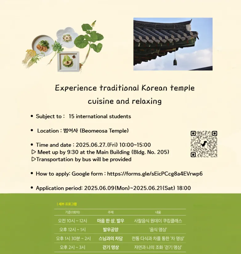 🧘‍♀️ Trải nghiệm ẩm thực chùa Hàn Quốc & Thiền thư giãn tại Beomeosa – Chỉ dành cho 15 du học sinh!
