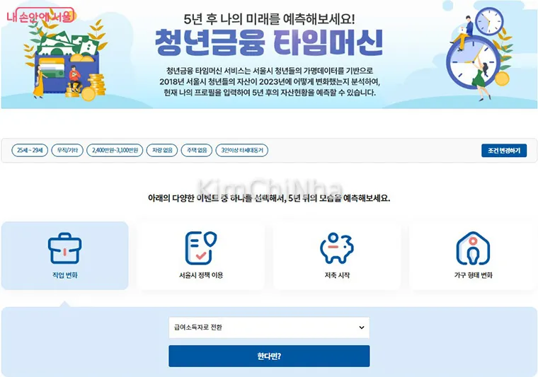 Bạn là một du học sinh, một lao động trẻ hay một người Việt Nam đang xây dựng sự nghiệp tại Hàn Quốc? Bạn có từng tự hỏi, liệu sau 5 năm nữa, thu nhập và khối tài sản của mình sẽ ra sao? Để giúp người trẻ giải đáp những thắc mắc về tương lai tài chính, chính quyền thành phố Seoul đã cho ra mắt một dịch vụ độc đáo: "Cỗ máy thời gian tài chính cho thanh niên" (청년 금융 타임머신 서비스).