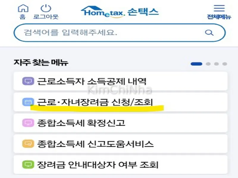 Đăng nhập và chọn menu [My Home Tax] → [근로·자녀장려금].