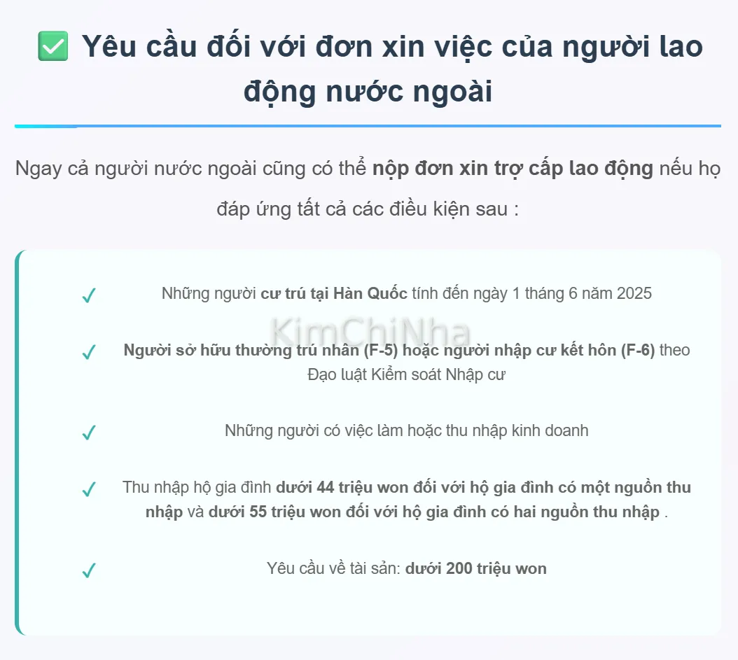 Hàng năm, chính phủ Hàn Quốc đều điều chỉnh các tiêu chí về thu nhập và tài sản cho phù hợp với tình hình kinh tế, và năm 2025 cũng không ngoại lệ.