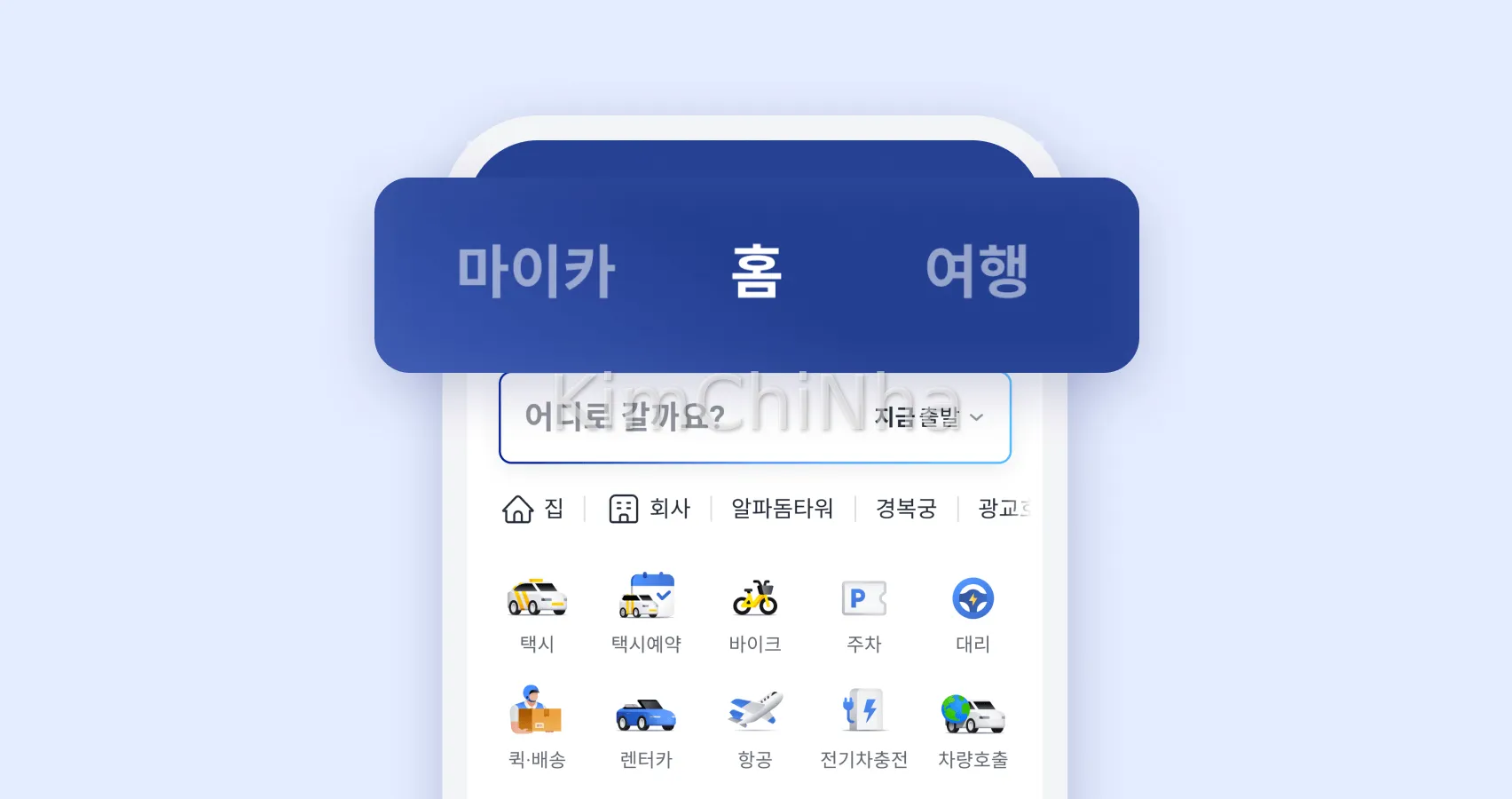 Sau khi đã đăng nhập vào ứng dụng Kakao T bằng tài khoản Kakao của mình, việc gọi một chiếc taxi chỉ mất vài bước đơn giản.