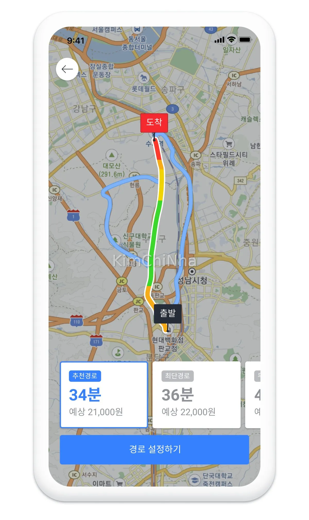 Nhập điểm đến (Destination) Gõ tên hoặc địa chỉ nơi bạn muốn đến vào ô tìm kiếm. Mẹo hay: Nếu bạn không tìm thấy địa chỉ bằng tiếng Anh, hãy tìm trên Google Maps hoặc Naver Maps (ứng dụng bản đồ phổ biến ở Hàn). Các ứng dụng này thường hiển thị địa chỉ bằng tiếng Hàn. Bạn chỉ cần sao chép địa chỉ tiếng Hàn đó và dán vào Kakao T.