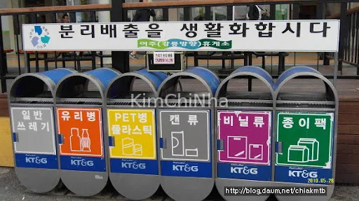 • Rác tái chế (재활용 쓰레기): Bao gồm giấy, nhựa, lon kim loại, chai thủy tinh… Mỗi loại lại có quy định riêng về cách rửa sạch và bỏ vào thùng tương ứng.