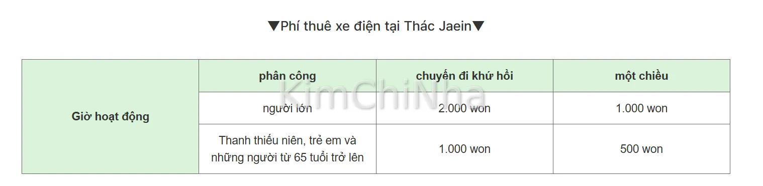 Di chuyển: Thác Jain nằm ở Yeoncheon, Gyeonggi-do. Từ cổng vào đến thác khoảng 20 phút đi bộ. Nếu không muốn đi bộ, bạn có thể sử dụng xe điện đưa đón với giá rất hợp lý: 1,000 KRW/người/lượt. Địa điểm này phù hợp hơn cho những ai đi bằng ô tô cá nhân.