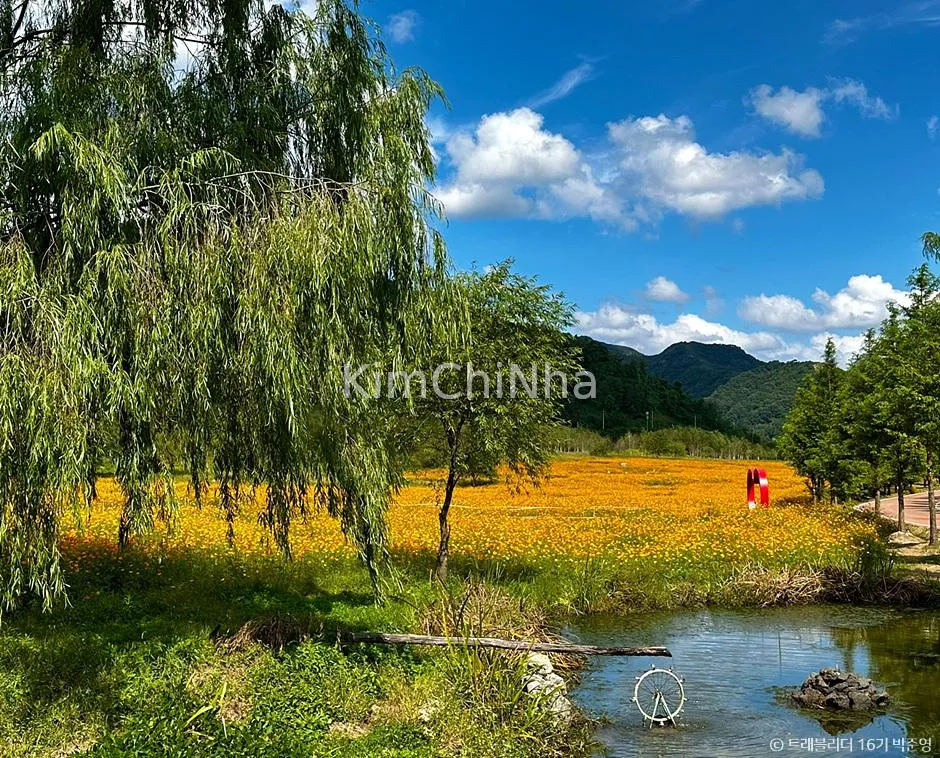 Vườn Cúc Vàng Imjingang là một viên ngọc ẩn ở ngoại ô Seoul, nơi vẻ đẹp được tạo nên từ chính bàn tay và trái tim của người dân địa phương. Khu vườn này được chính những người dân Yeoncheon tự tay gieo trồng và chăm sóc, không chỉ có hoa cúc mà còn có cả hoa sao nhái, hoa cúc, bạch nhật, vạn thọ và nhiều loại hoa khác.