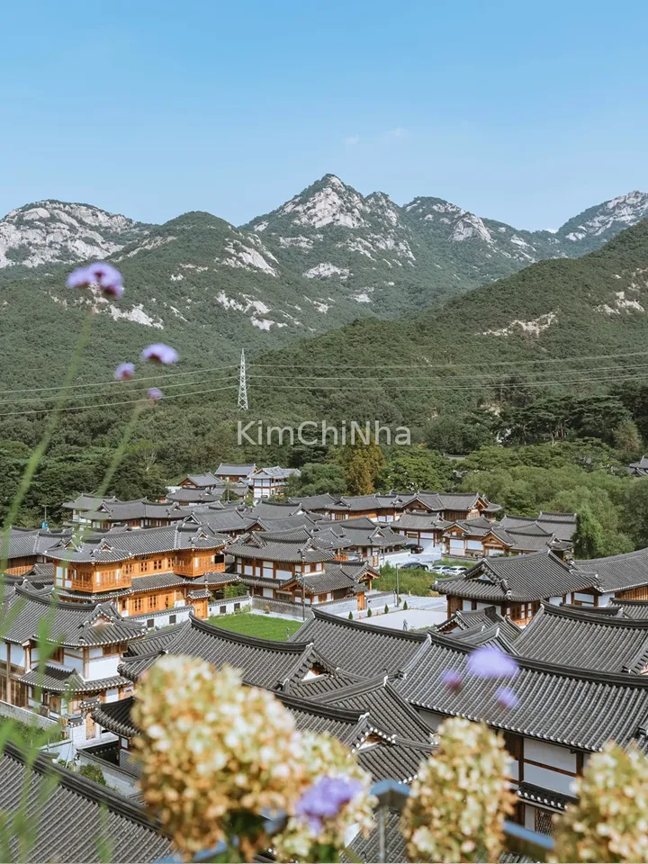 Điểm thú vị ở Eunpyeong Hanok Village chính là sự kết hợp giữa những ngôi nhà hanok truyền thốngkhung cảnh núi non bốn mùa thay đổi. Mùa xuân có hoa anh đào nở rộ, mùa hè xanh mướt, mùa thu lá đỏ vàng rực rỡ, còn mùa đông thì khoác lên màu tuyết trắng tinh khôi. Đây là nơi lý tưởng cho những ai muốn trải nghiệm sự bình yên của hanok mà không bị chen chúc đông người.