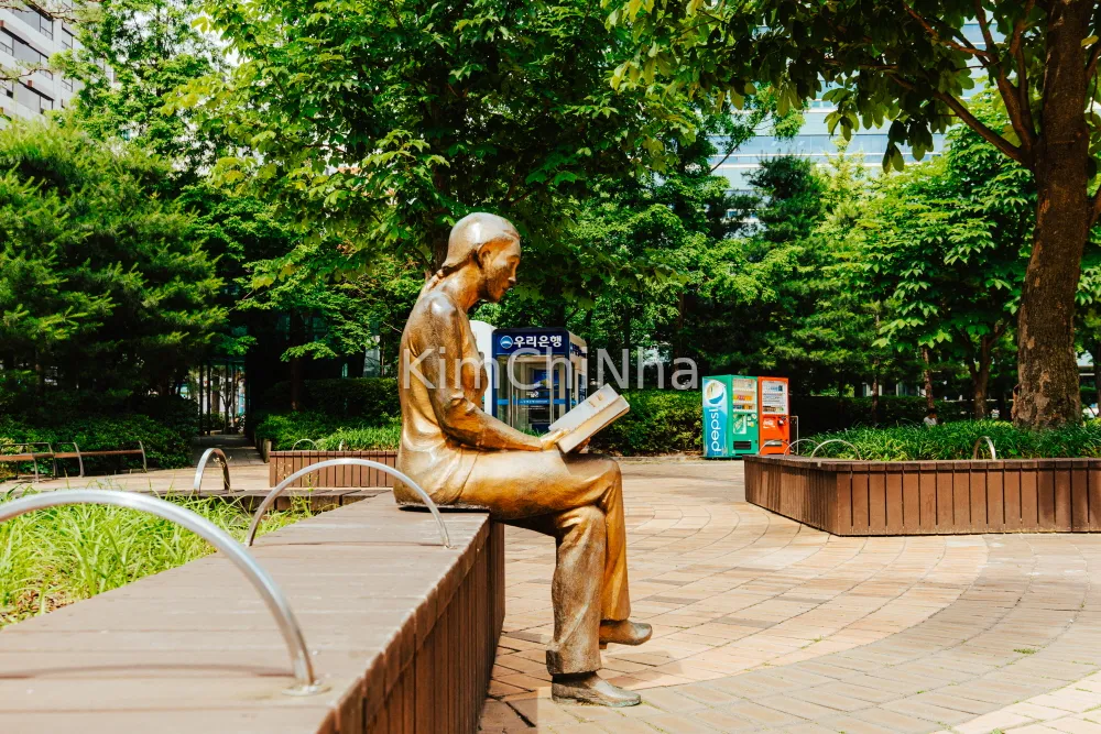 Đi bộ về phía Gwanghwamun, bạn sẽ bắt gặp một bức tượng đồng của nhà văn Yeom Sang-seop đang ngồi trầm ngâm trên một chiếc ghế dài. Ông được mệnh danh là người chép sử của thời đại. Toàn bộ cuộc đời ông từ khi du học Nhật Bản, trải qua phong trào độc lập, đến ngày giải phóng đều được tái hiện trong các tác phẩm của mình.