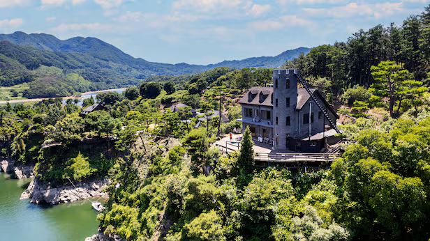 Đây là “ngôi sao” trong bản đồ du lịch Okcheon, thu hút khoảng 200.000 lượt khách/năm. Nằm nép mình bên hồ Daecheong, khu vườn mang hơi thở châu Âu với tường phủ dây leo xanh mướt, lối vào mang tên “Cánh cổng hẹp” khiến ai bước qua cũng thấy mình nhỏ bé trước thiên nhiên.