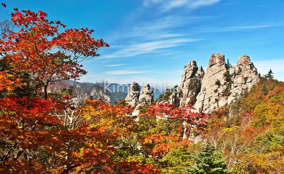 Seoraksan nổi tiếng nhất vào mùa thu, khi cả ngọn núi khoác lên mình bộ áo đỏ, vàng, cam rực rỡ.