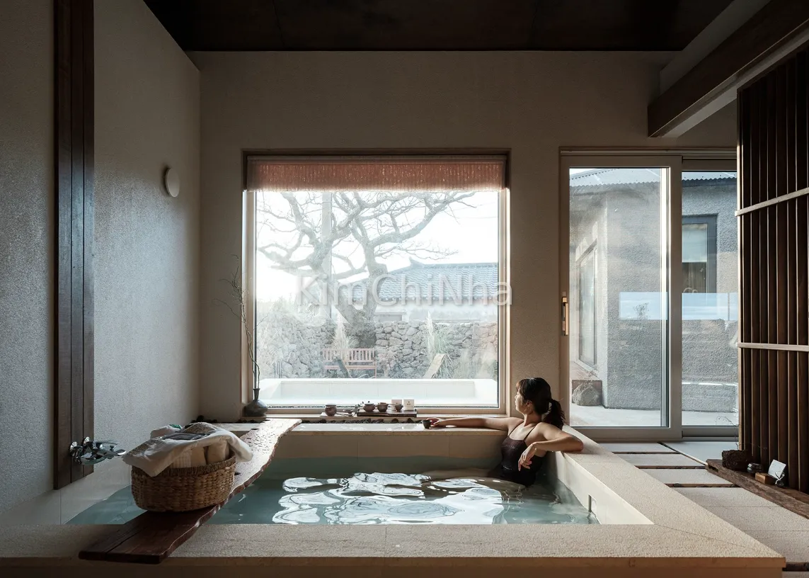 • Xúc giác: cảm giác khi bước chân trần trên sàn gỗ hanok, khi ngâm mình trong bồn Jacuzzi trong nhà hoặc hot tub ngoài sân, là những khoảnh khắc thật sự chữa lành.