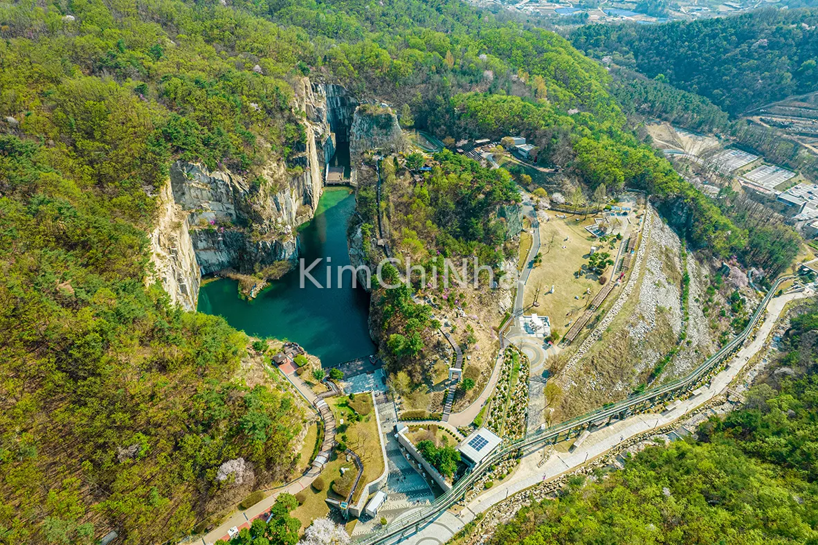 Ít ai biết rằng, nơi được gọi là “hồ nước ngọc bích” này từng là một mỏ đá granite khai thác trong nhiều thập kỷ. Khi hoạt động khai thác kết thúc, Pocheon chỉ còn lại những vách đá xám xịt, khô cằn và một hồ nước sâu lặng lẽ hình thành từ dòng nước mưa tự nhiên.