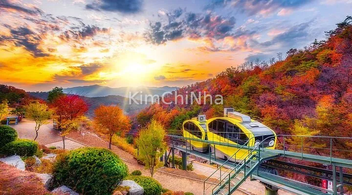 Ngay khi đến nơi, bạn sẽ thấy xe điện leo dốc (monorail) đưa du khách từ cổng vào lên đến khu hồ chính. Vé monorail chỉ khoảng 5.000 KRW, và bạn hoàn toàn có thể đi bộ nếu muốn ngắm cảnh kỹ hơn.