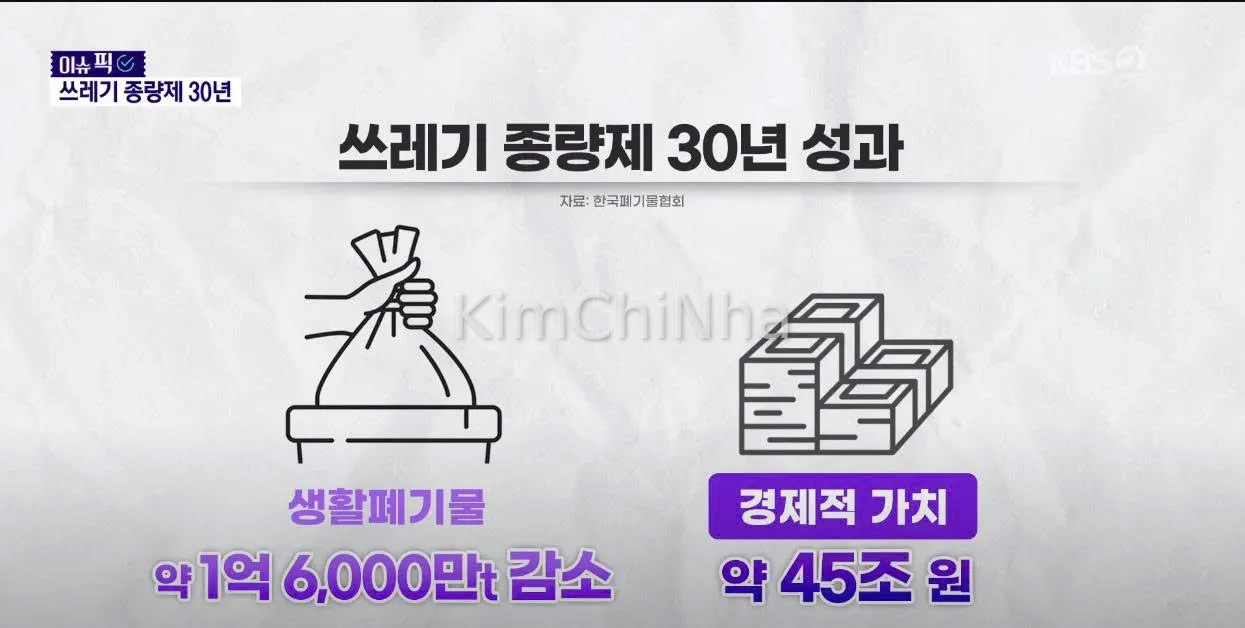 Theo thống kê, trong 30 năm qua, lượng rác sinh hoạt đã giảm 160 triệu tấn, tương đương với 32 triệu chiếc xe tải 5 tấn! Giá trị kinh tế thu được từ việc giảm lượng rác được ước tính lên đến 45.000 tỷ won.