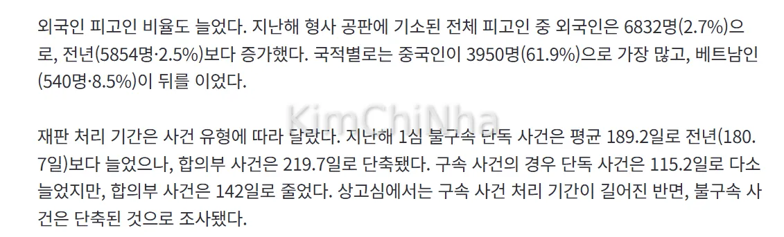 Cộng đồng người Việt tại Hàn nằm trong nhóm số bị cáo là người nước ngoài gia tăng mạnh, trong đó người Việt đứng thứ hai sau công dân Trung Quốc.