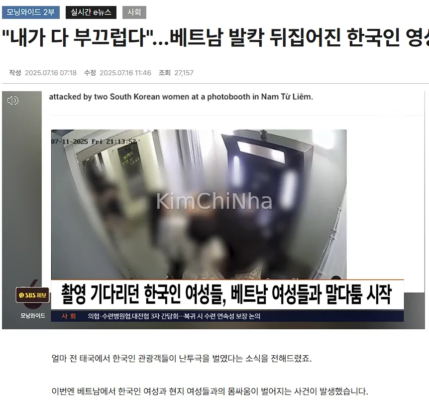 Tối ngày 11/07/2025, tại một tiệm photobooth ở khu vực Mễ Trì, Nam Từ Liêm, Hà Nội, hai bạn nữ người Việt đang sử dụng dịch vụ chụp ảnh thì bất ngờ bị hai người phụ nữ Hàn Quốc lớn tiếng quát tháo, giục chụp nhanh, dù thời gian thuê booth vẫn chưa kết thúc. Khi một trong hai bạn nữ Việt Nam quay sang nói “Ủa?”, thì một người phụ nữ Hàn Quốc đã bất ngờ lao vào hành hung, túm tóc, đấm đá liên tiếp vào nạn nhân.