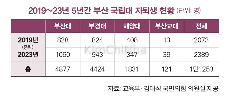 Theo số liệu Bộ Giáo dục do nghị sĩ Kim Dae-sik (Ủy ban Giáo dục, đảng Quyền lực Quốc dân) công bố, từ 2019 đến 2023, 32 trường đại học quốc lập ngoài Seoul có tổng cộng 84.521 sinh viên bỏ học. Trung bình, mỗi trường ghi nhận 528 sinh viên bỏ học/năm – gấp đôi mức trung bình 220 người ở các trường quốc lập tại Seoul.
