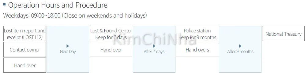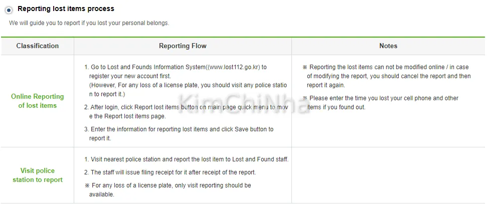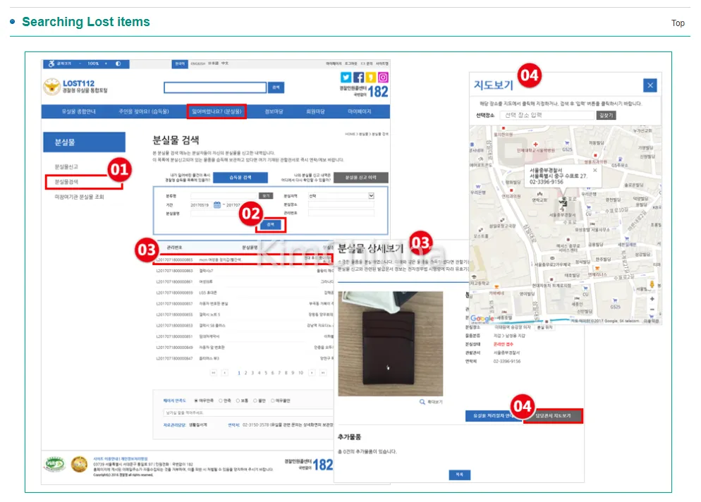 Sau 7 ngày, đồ sẽ được chuyển sang hệ thống quốc gia LOST112 (trang web tìm đồ thất lạc của cảnh sát Hàn).