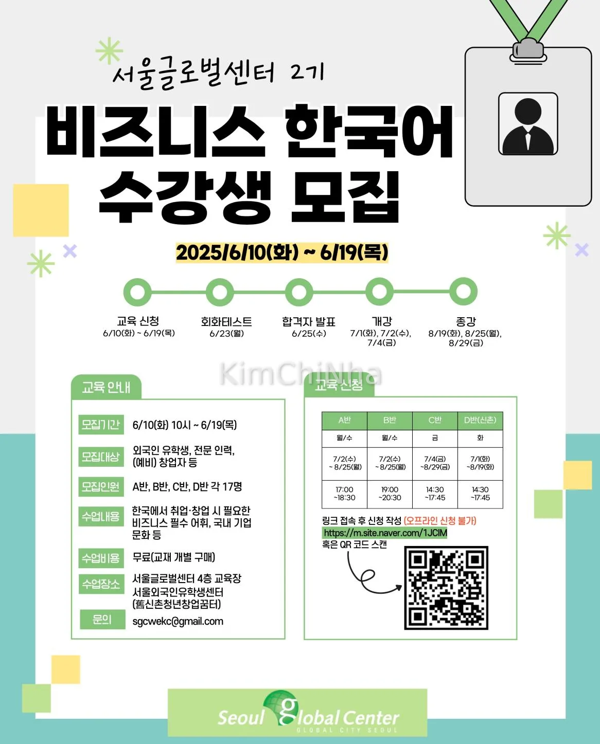 📢 [THÔNG BÁO TUYỂN SINH] Khóa học “Tiếng Hàn thương mại – kỳ 2” tại Seoul Global Center