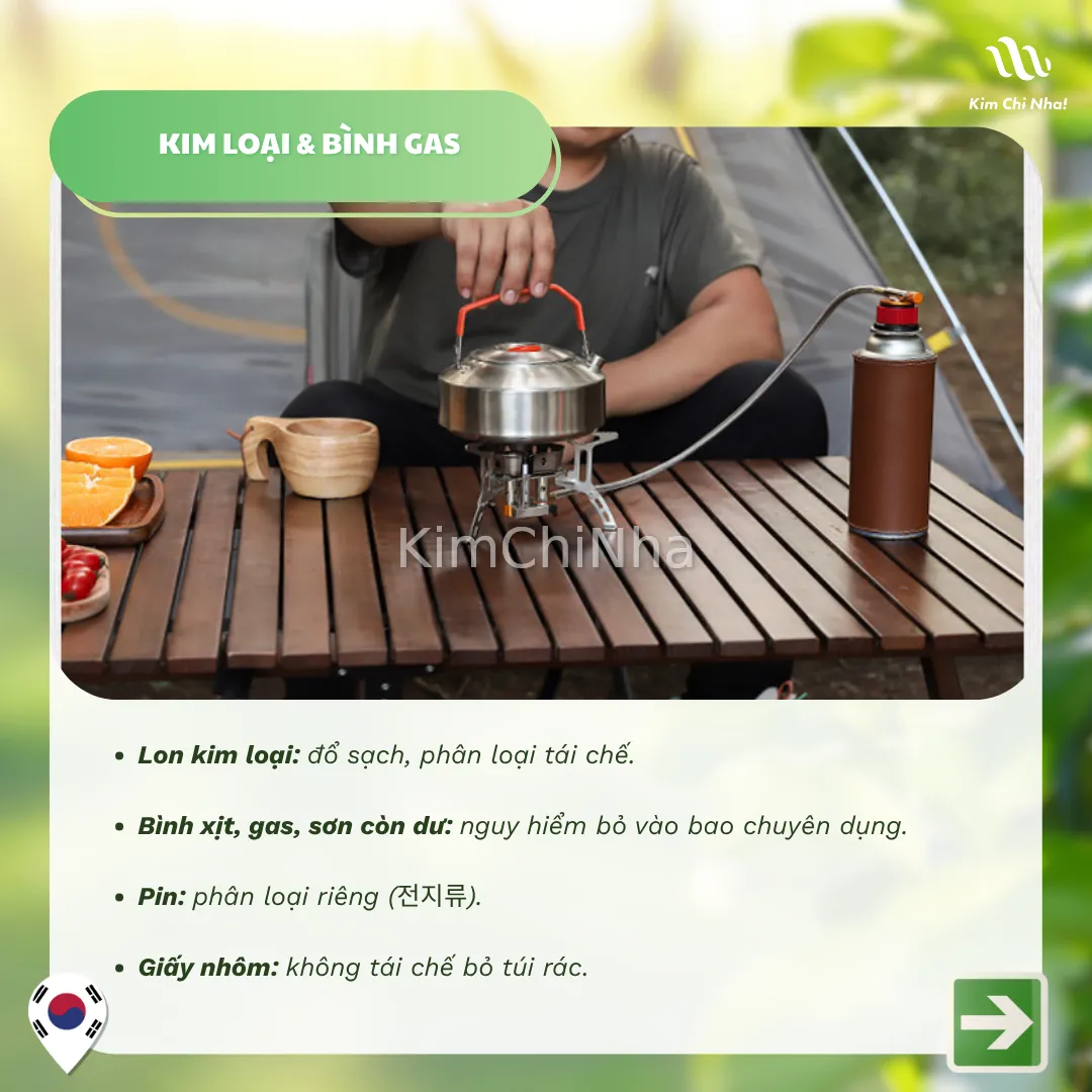Lon kim loại: đổ sạch nội dung, phân loại tái chế.