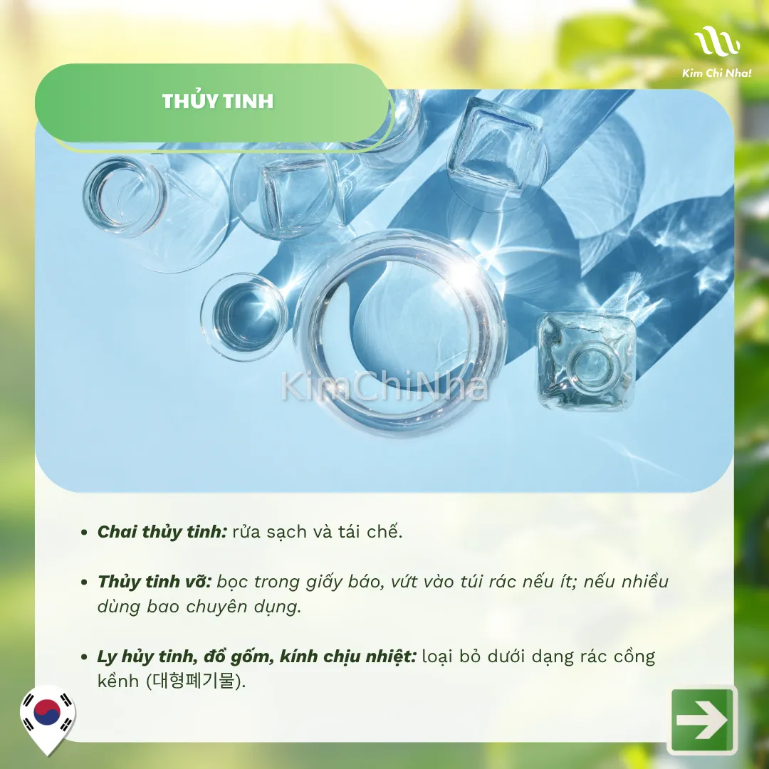 Thủy tinh vỡ: bọc trong giấy báo, vứt vào túi rác nếu ít; nếu nhiều dùng bao chuyên dụng.
