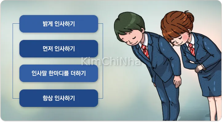 Ngoài ra, cúi chào còn kết hợp với lời nói. Người Hàn thường chào bằng cụm từ “안녕하세요” (Xin chào) kèm theo cúi đầu nhẹ, hoặc “안녕하십니까” (Kính chào) trong trường hợp trang trọng.